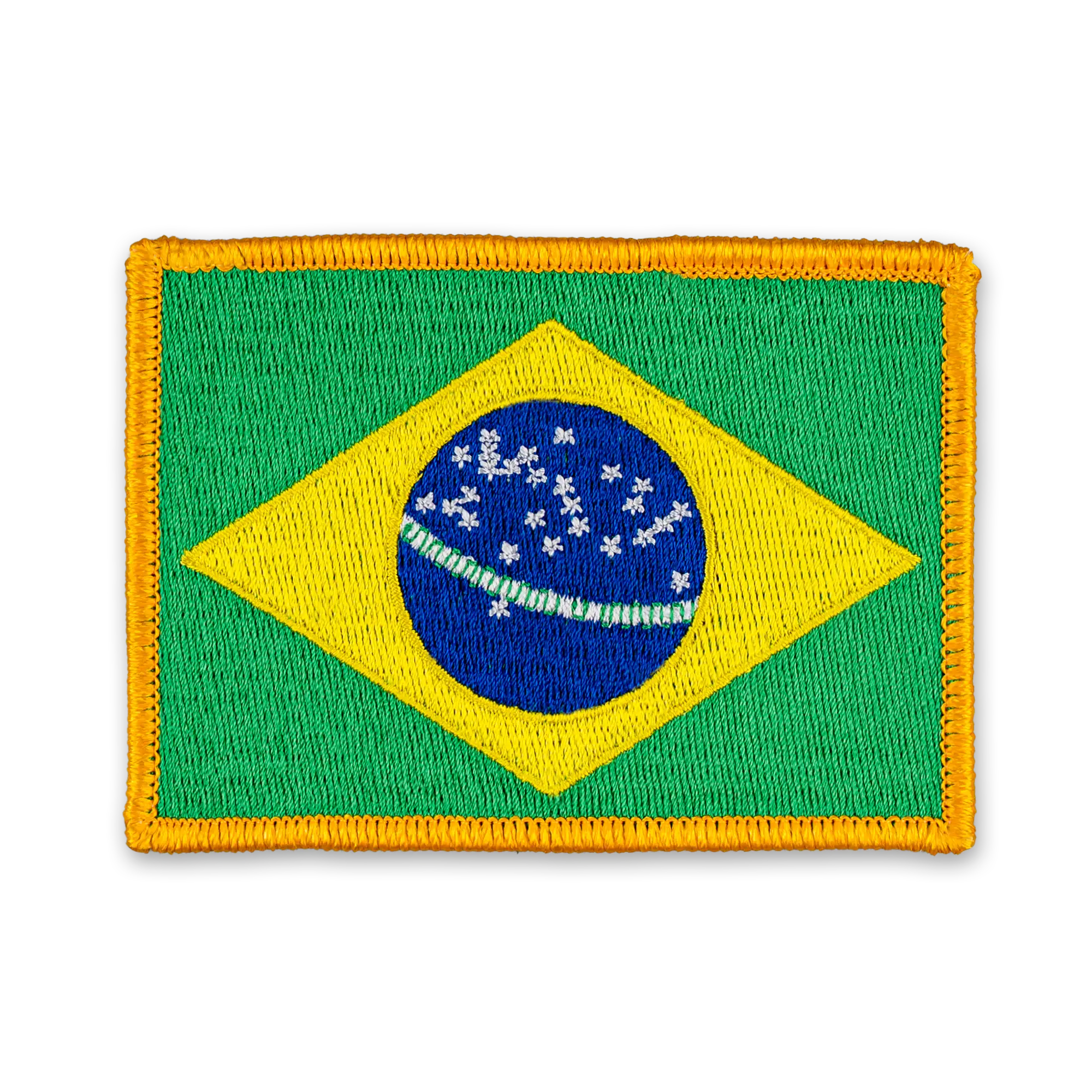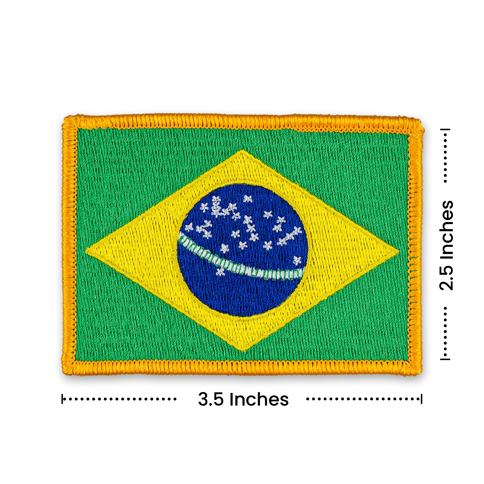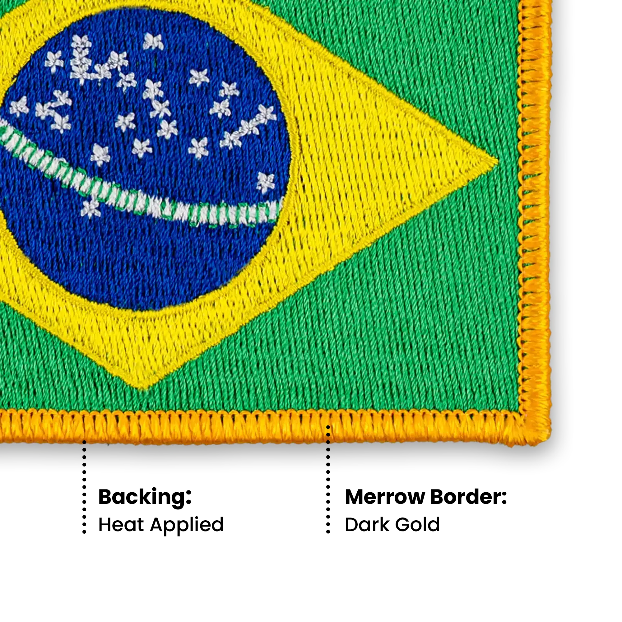 Pack of 25 - 3.5" x 2.5" - Official Brazil Flag Patch - Merrow Gold Border - Heat Applied Backing