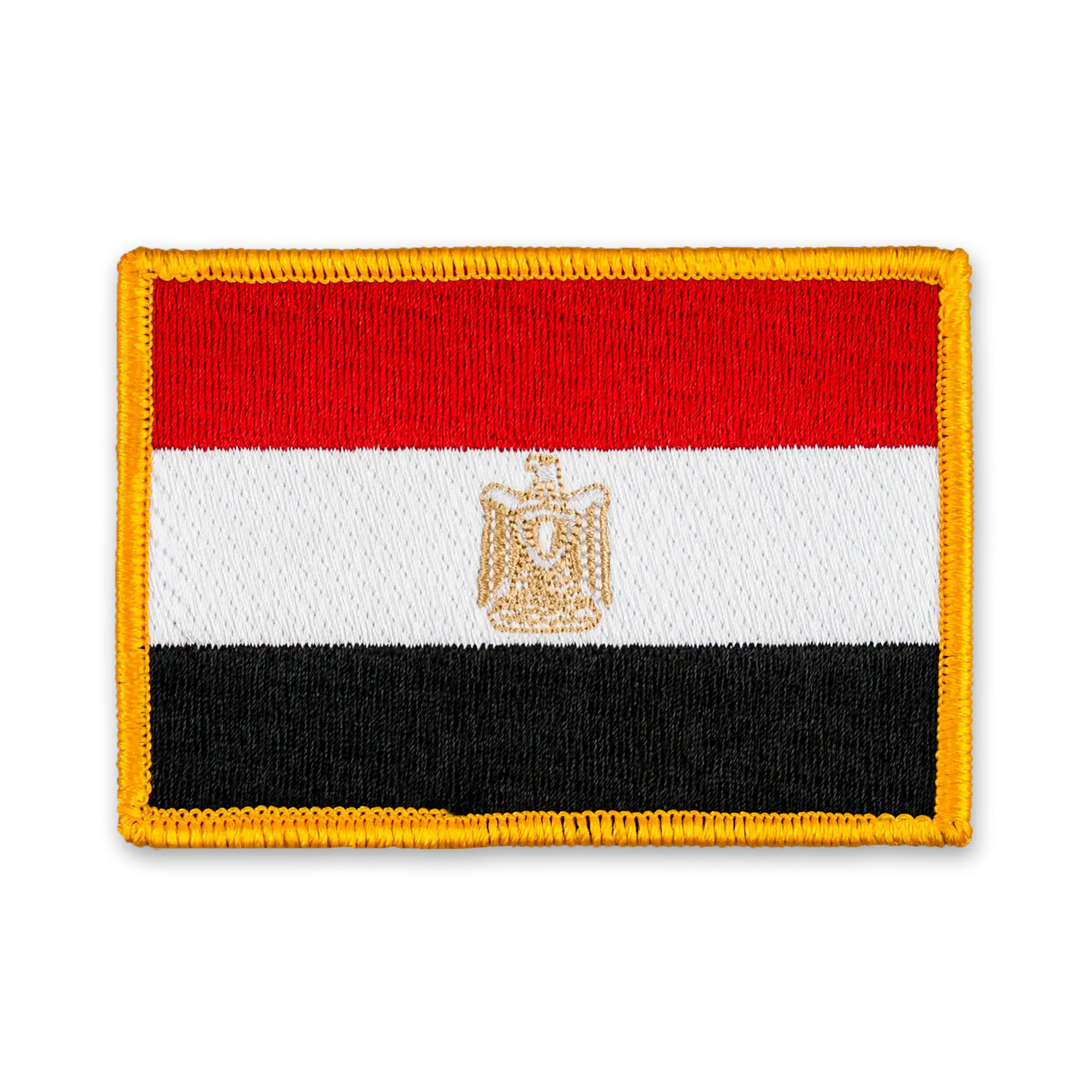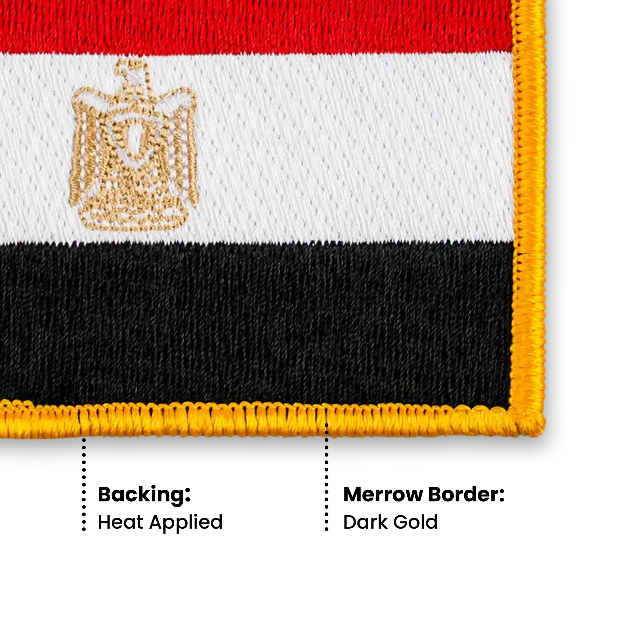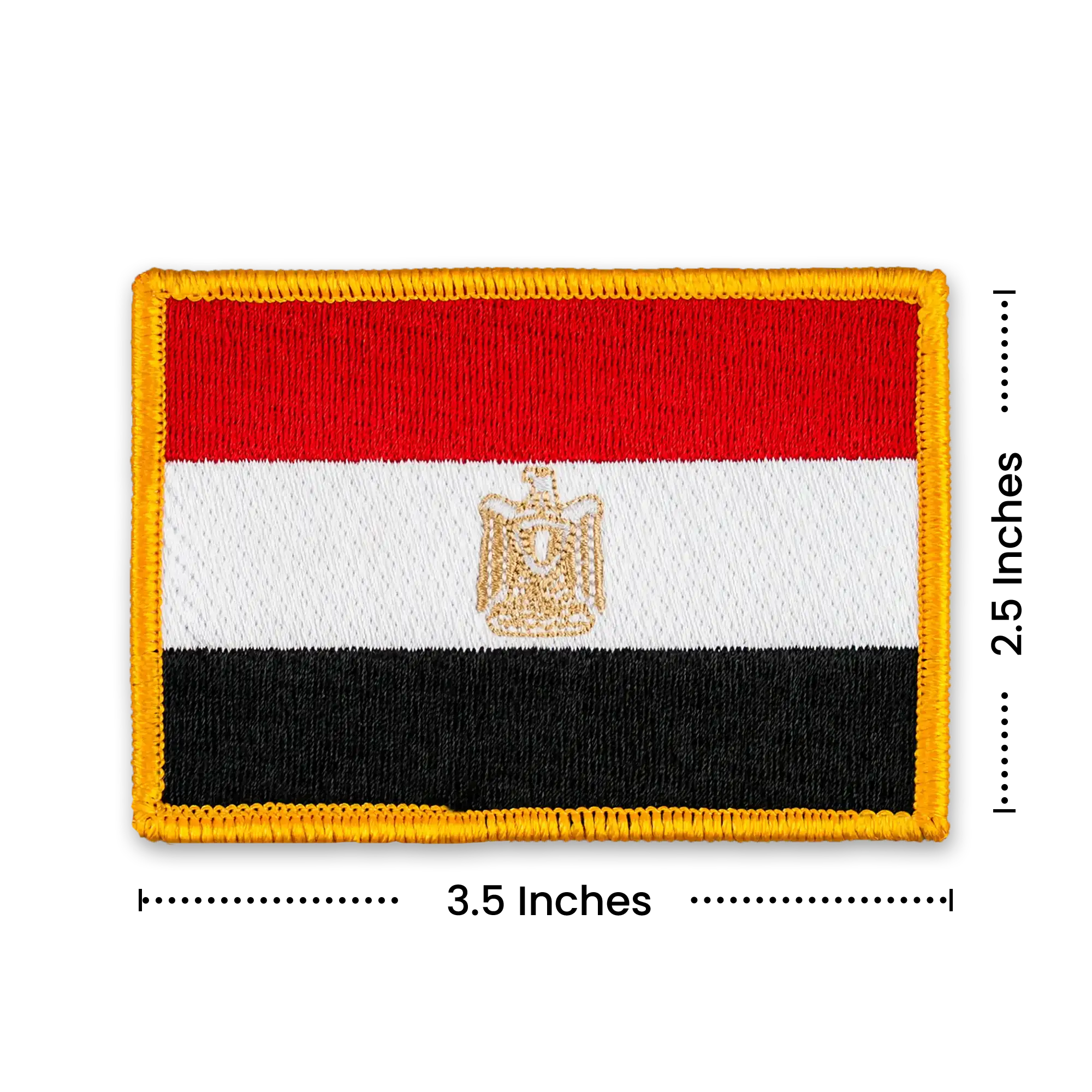 Pack of 25 - 3.5" x 2.5" - Official Egypt Flag Patch - Merrow Gold Border - Heat Applied Backing