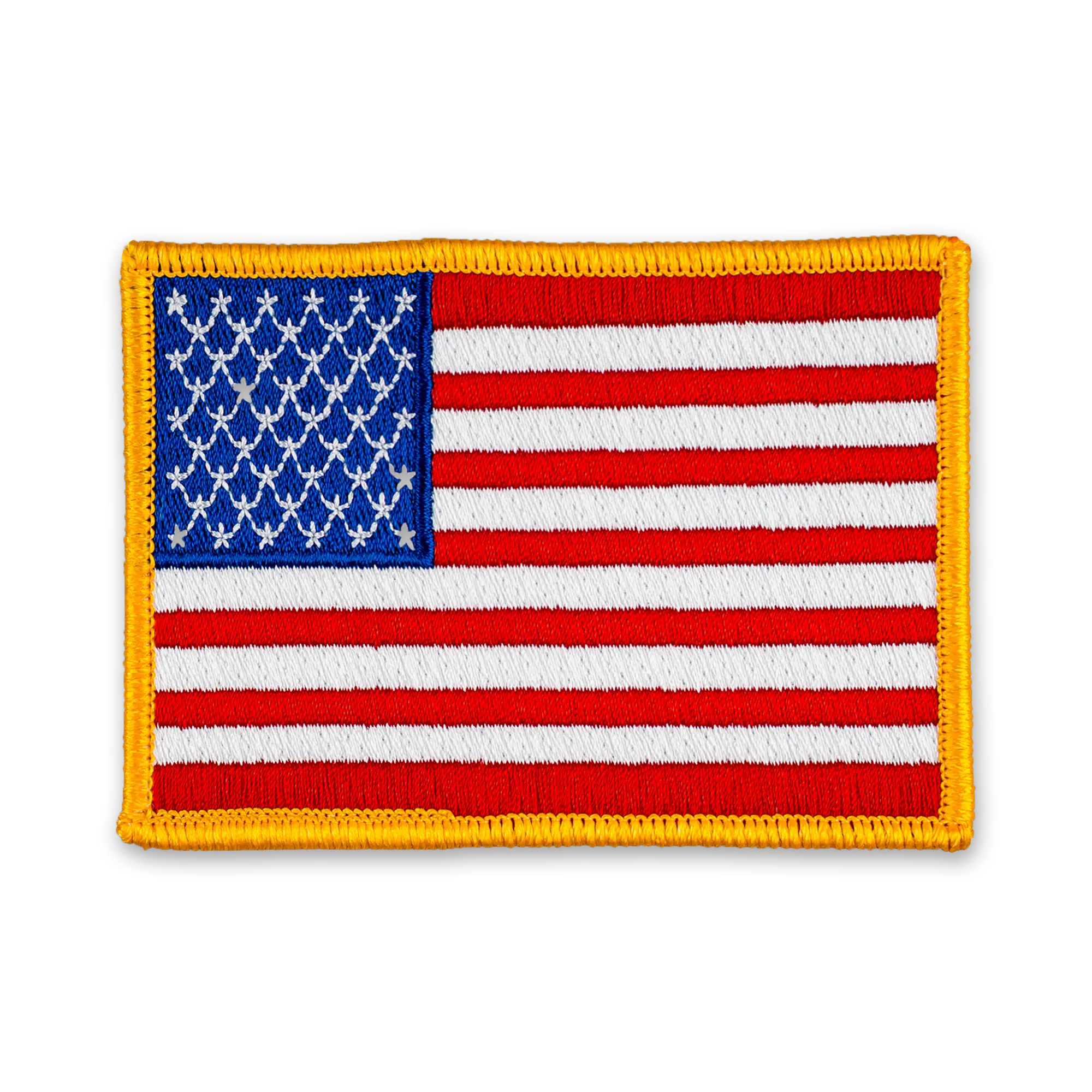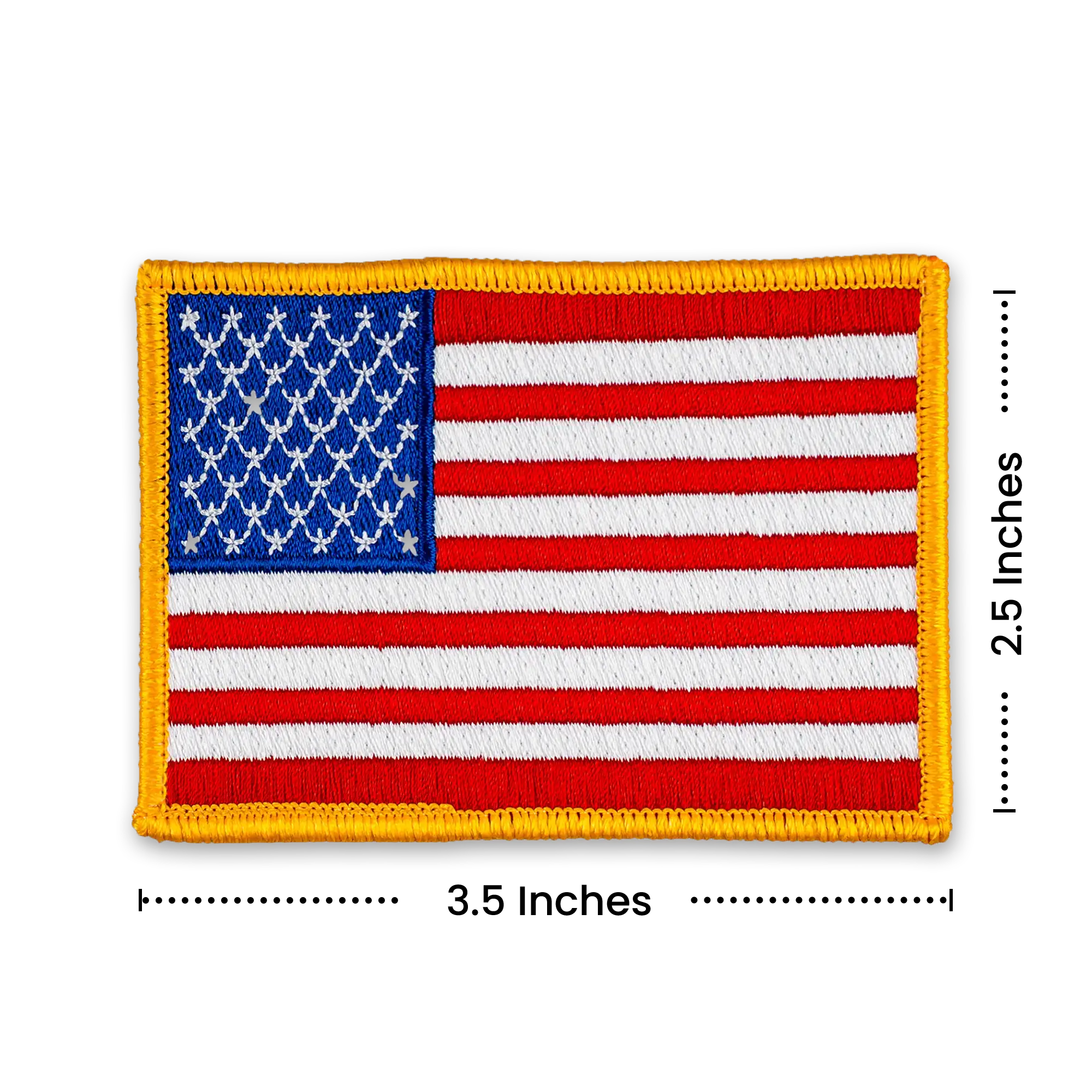 Pack of 25 - 3.5" x 2.5" - Official United States Flag Patch - Merrow Gold Border - Heat Applied Backing
