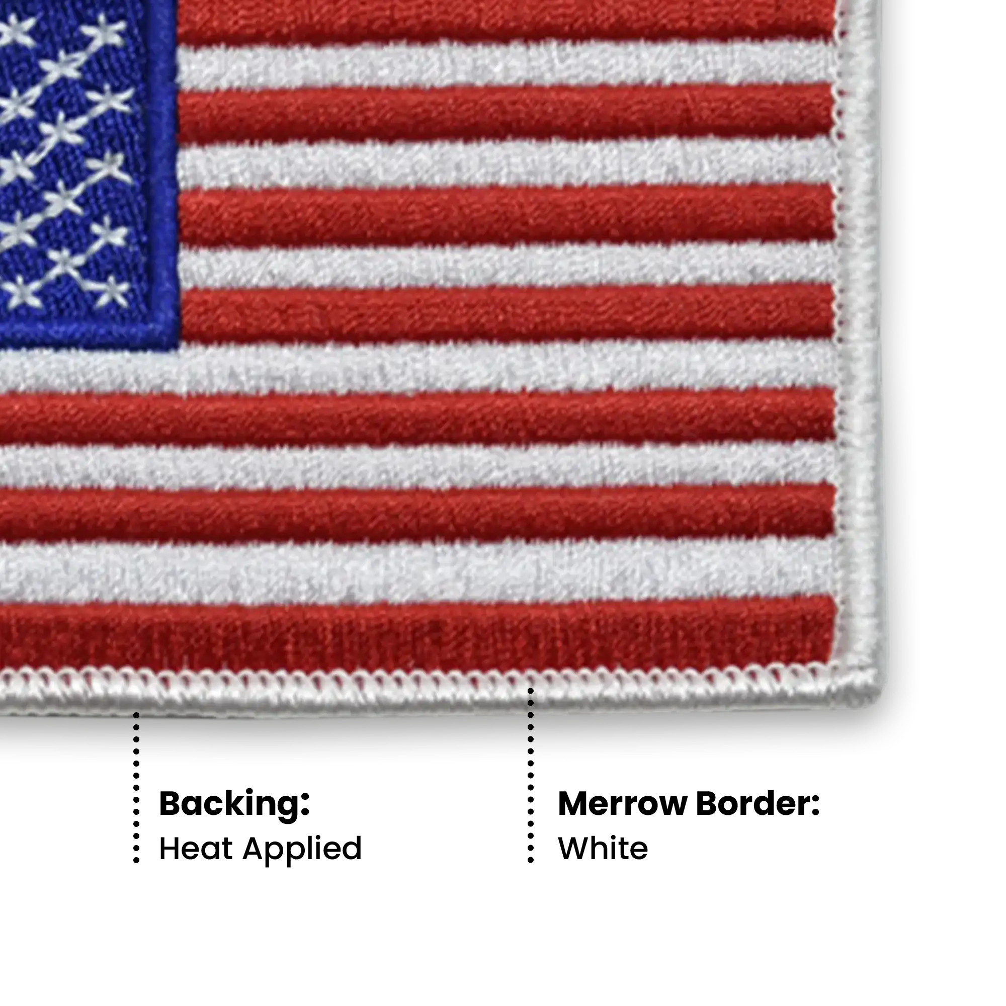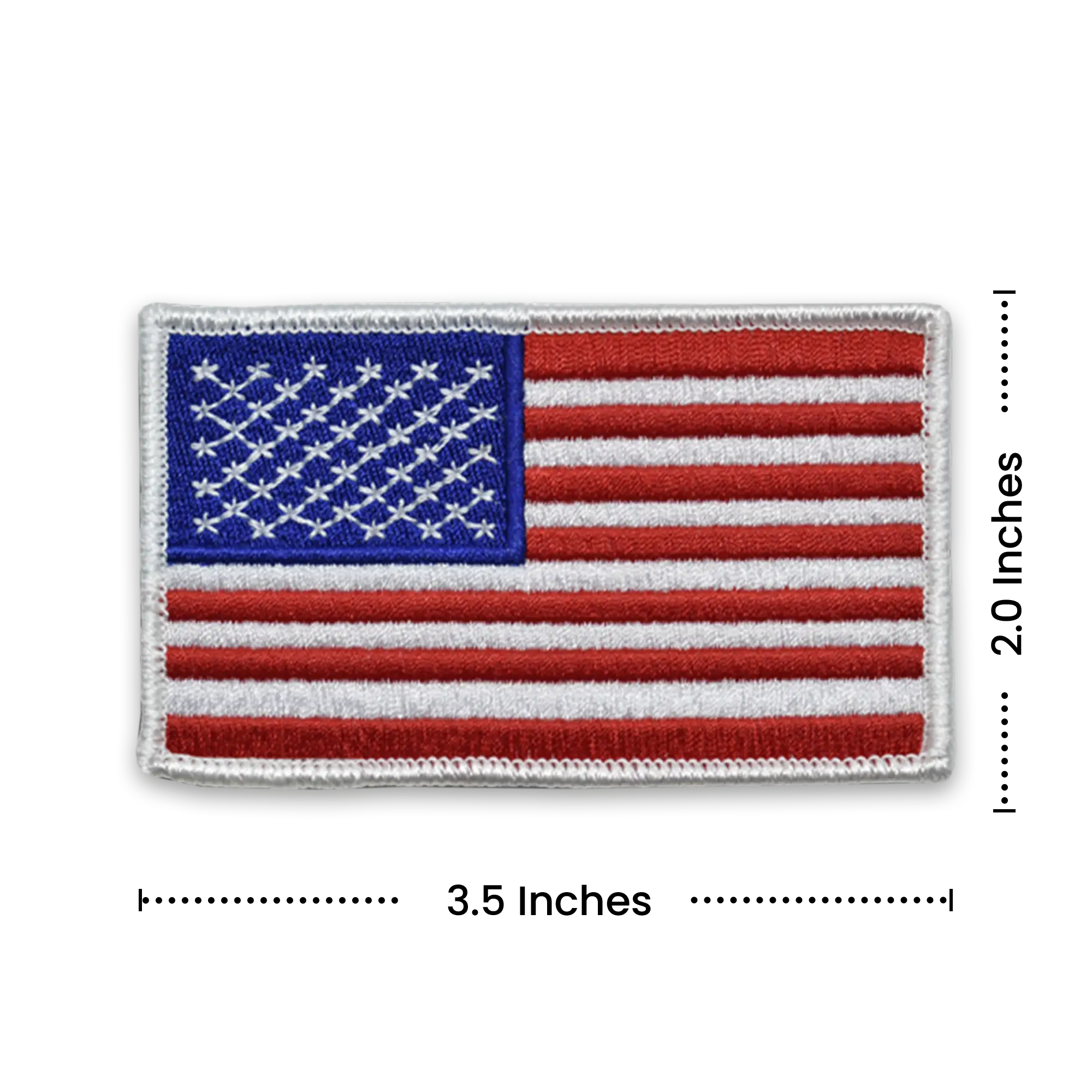 Pack of 25 - 3.5" x 2" - Official United States Flag Patch - Merrow White Border - Industrial Backing